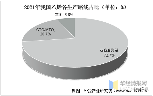 目前,我国乙烯生产路线主要以石脑油裂解为主,约占72.7%,CTO/MTO工艺占比约20.7%,其他生产路线占比6.6%。乙烷裂解制乙烯(含混合烷烃裂解)、重油催化热裂解制烯烃、原油直接裂解制烯烃、乙醇脱水制乙烯等技术均已实现工业化,乙烯原料呈现出轻质化、多元化、一体化发展趋势。